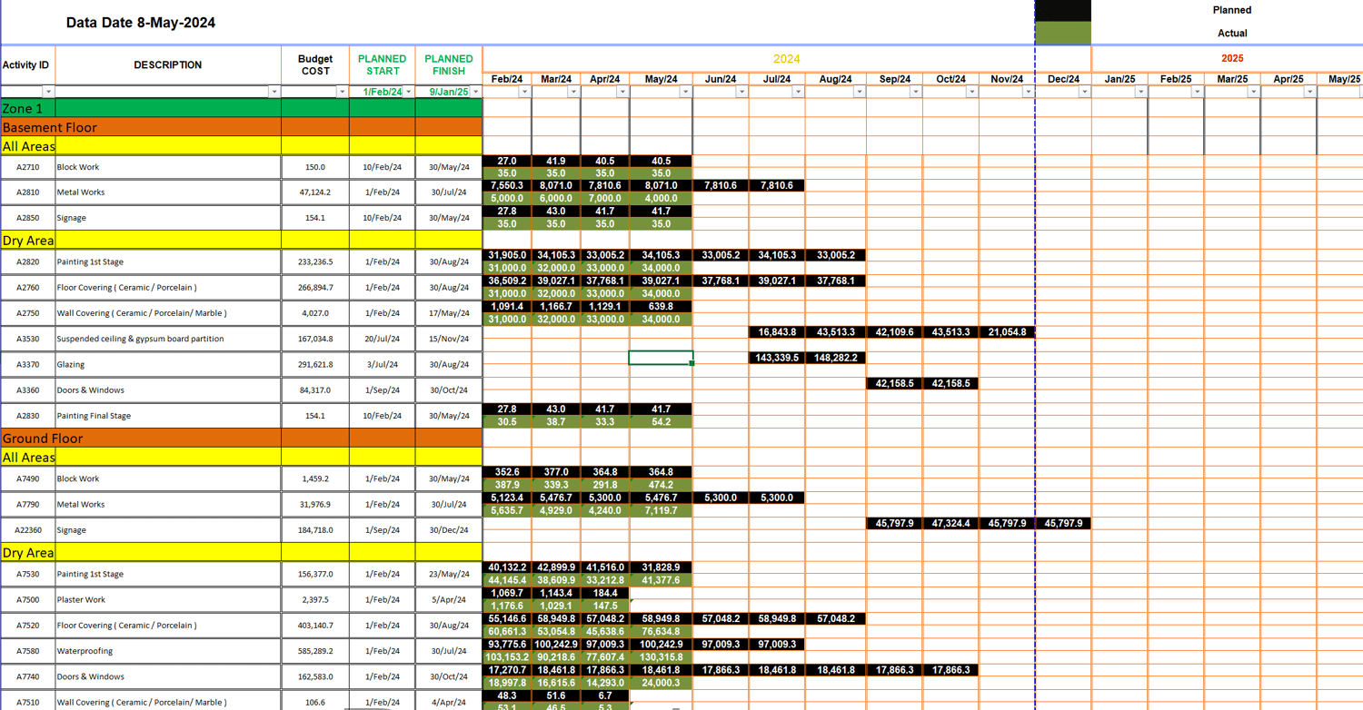 The provided Excel file contains two sheets: "Bar Chart" and "Cash Flow". focusing on project management, Earned Value Management (EVM), and the utility of the data provided.