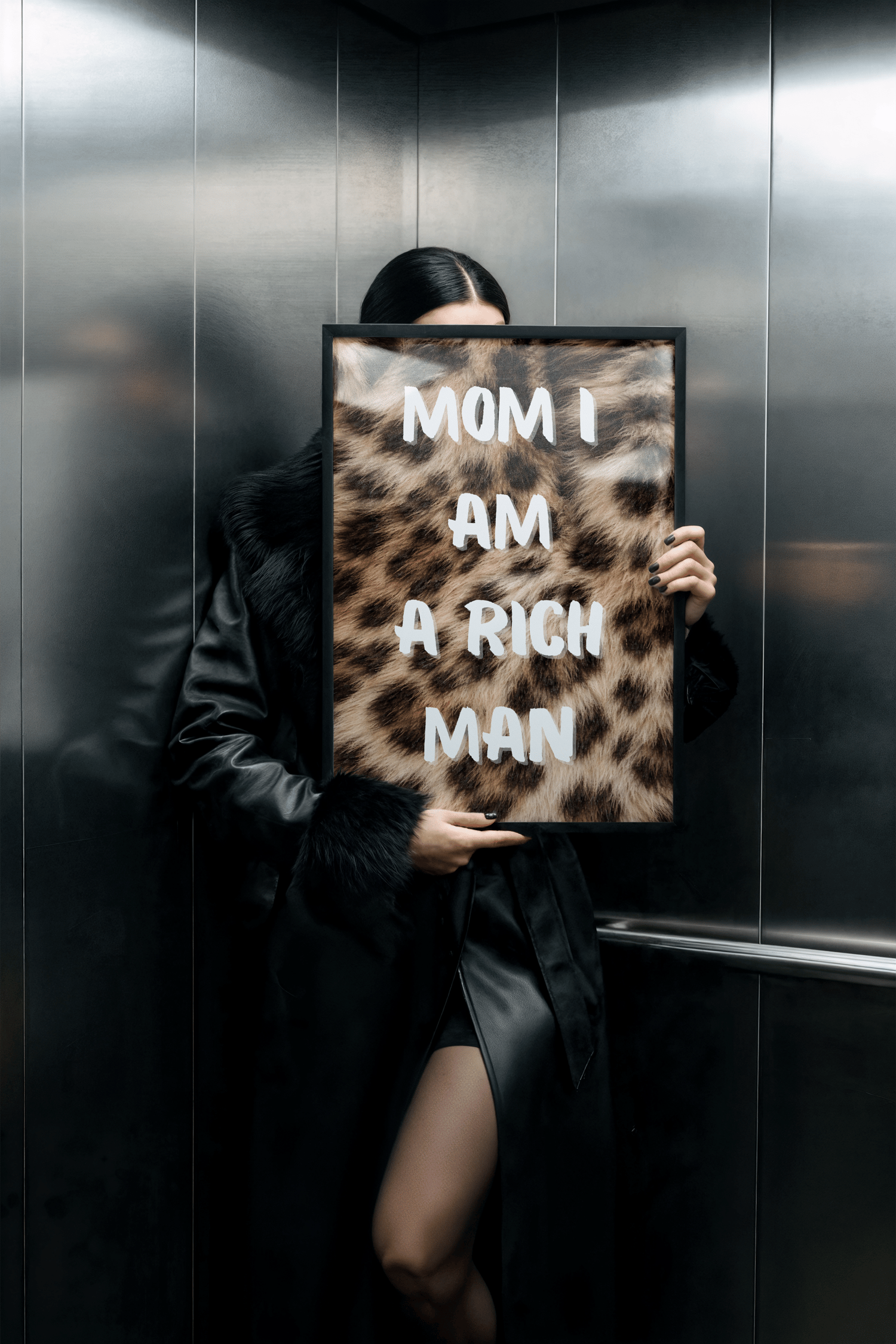 The “Mom I Am a Rich Man” leopard texture poster is a fashion-forward statement piece made for bold interiors and main-character apartments.