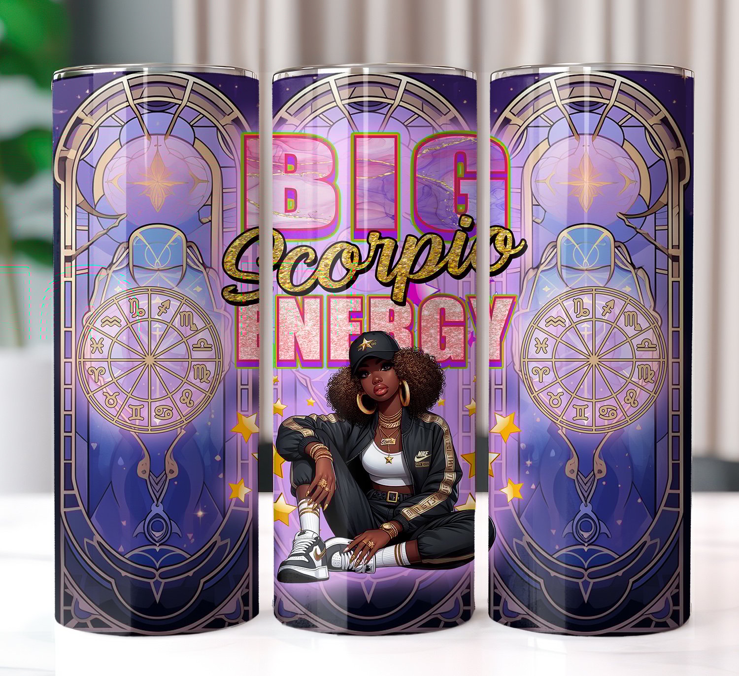 Bring the mystery, power, and intensity with this BIG Scorpio Energy 20oz stainless steel tumbler! This handmade cup features a bold sublimation design with deep cosmic tones, gold zodiac details, and a stylish illustration that captures the passionate and fearless Scorpio spirit. Perfect for birthday gifts, everyday use, astrology lovers, and anyone who loves a touch of glam with their zodiac energy.