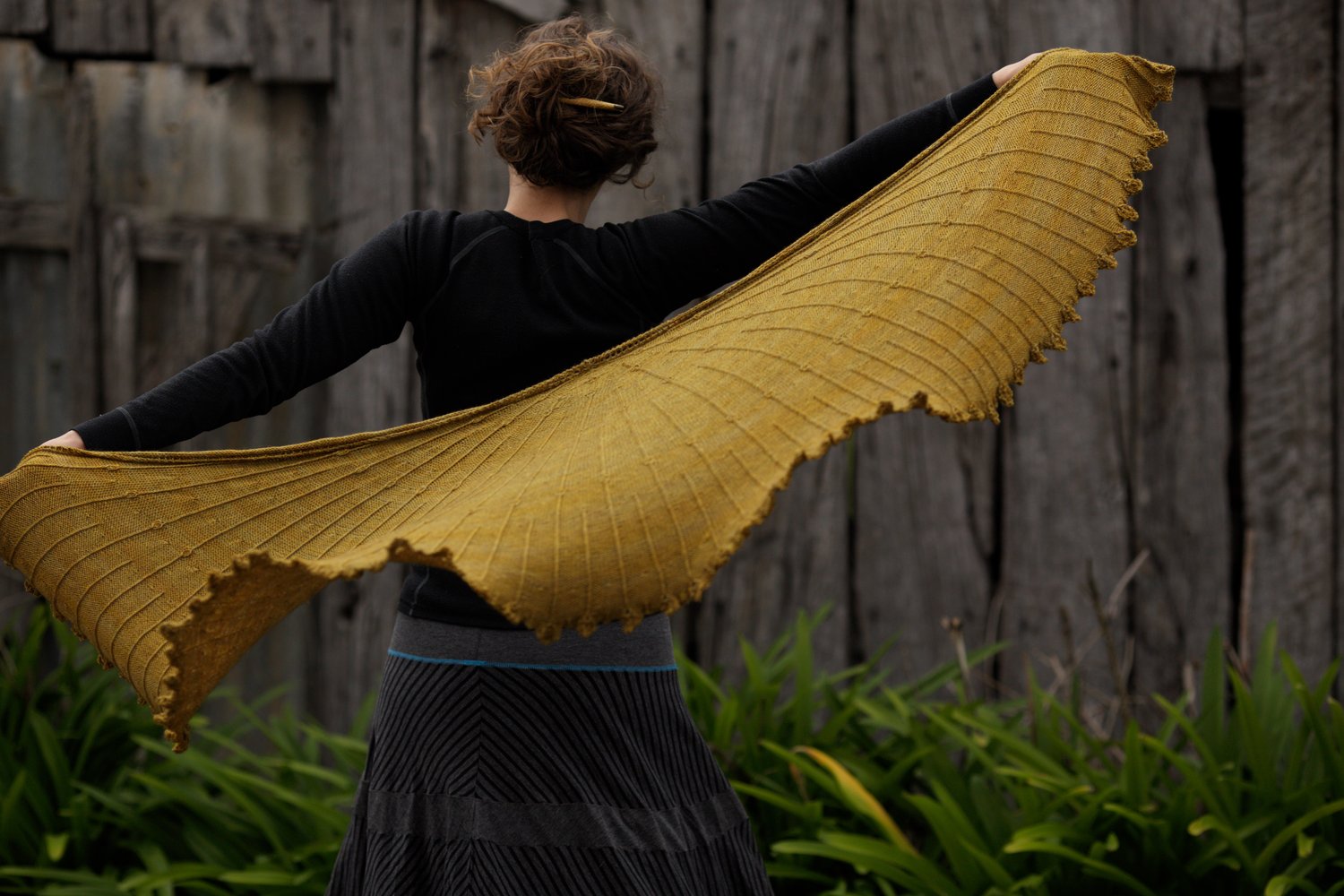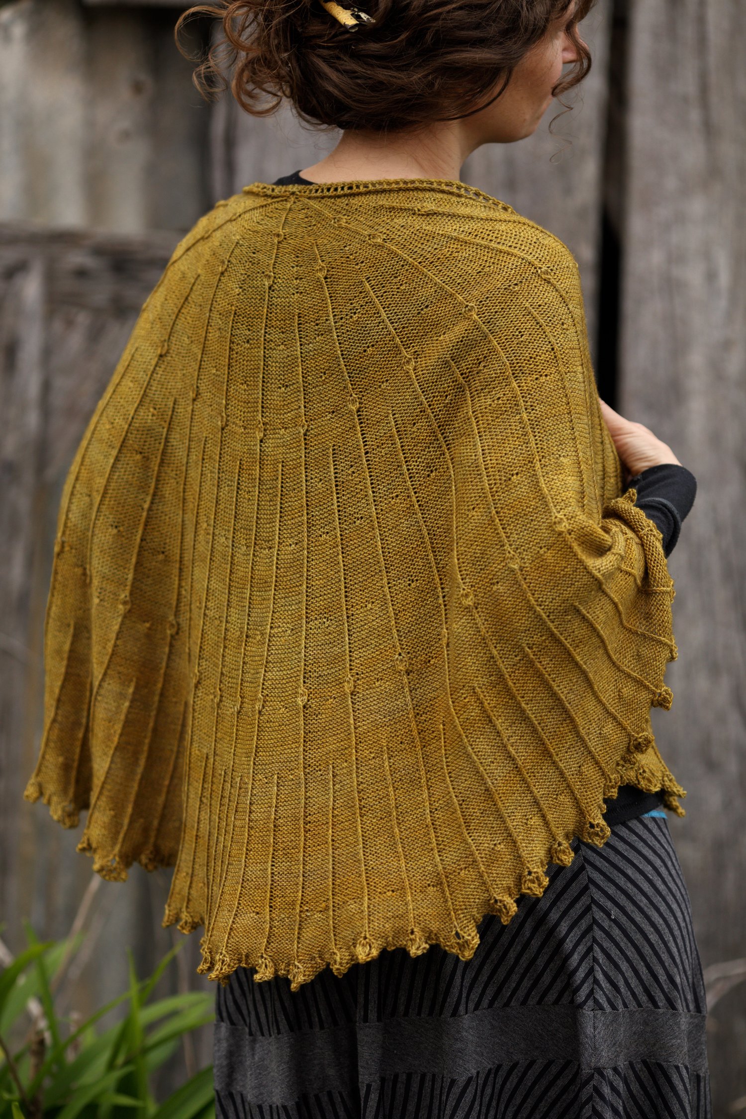 Random Acts of Kindness is an elegant and versatile semicircular shawl, embossed by radiating lines of twisted stitches and buds that double and redouble as the rows progress, much the way acts of kindness inspire further kindnesses.