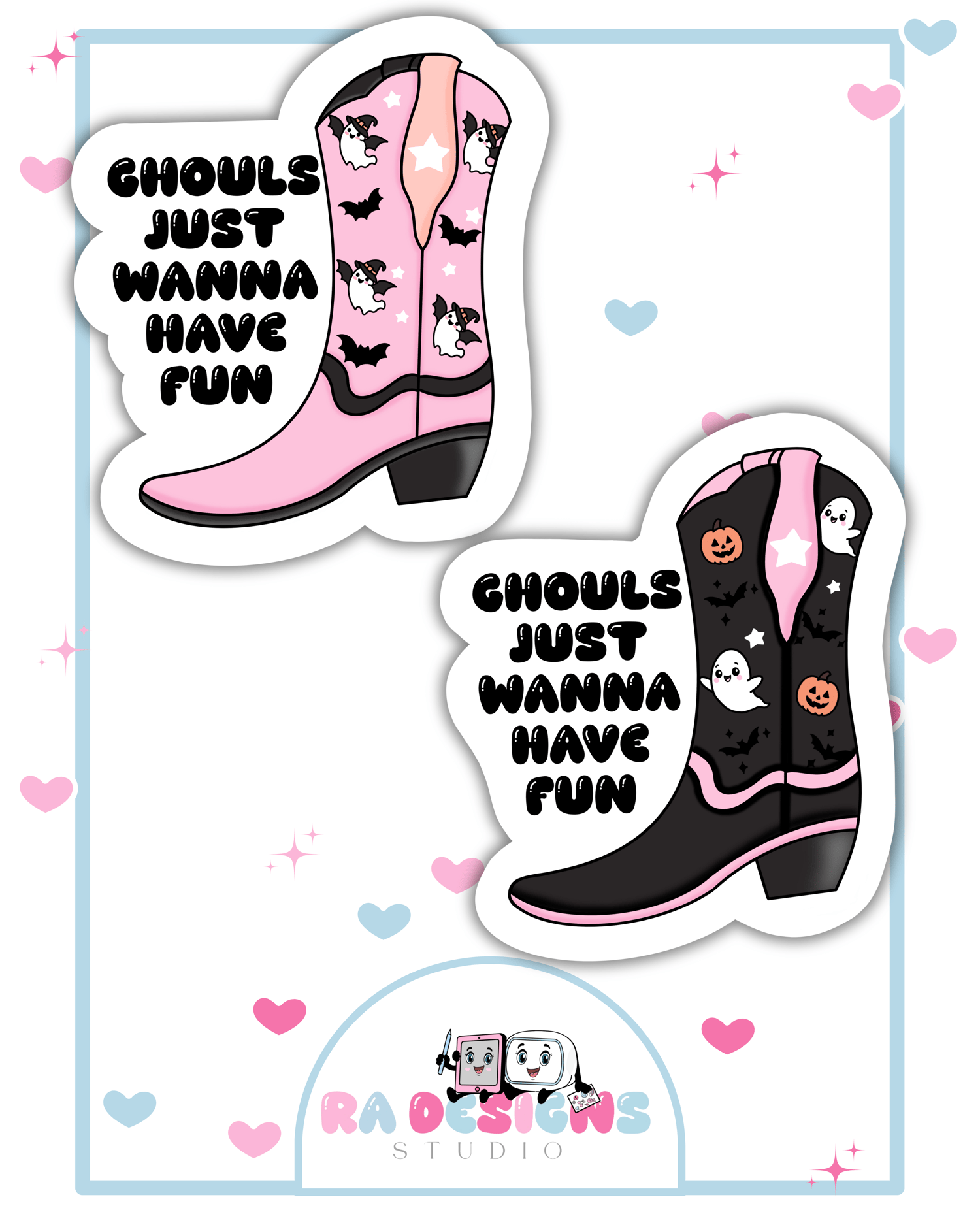 Add ghouls just wanna have fun to your sticker collection today includes 2 glossy vinyl die cut stickers