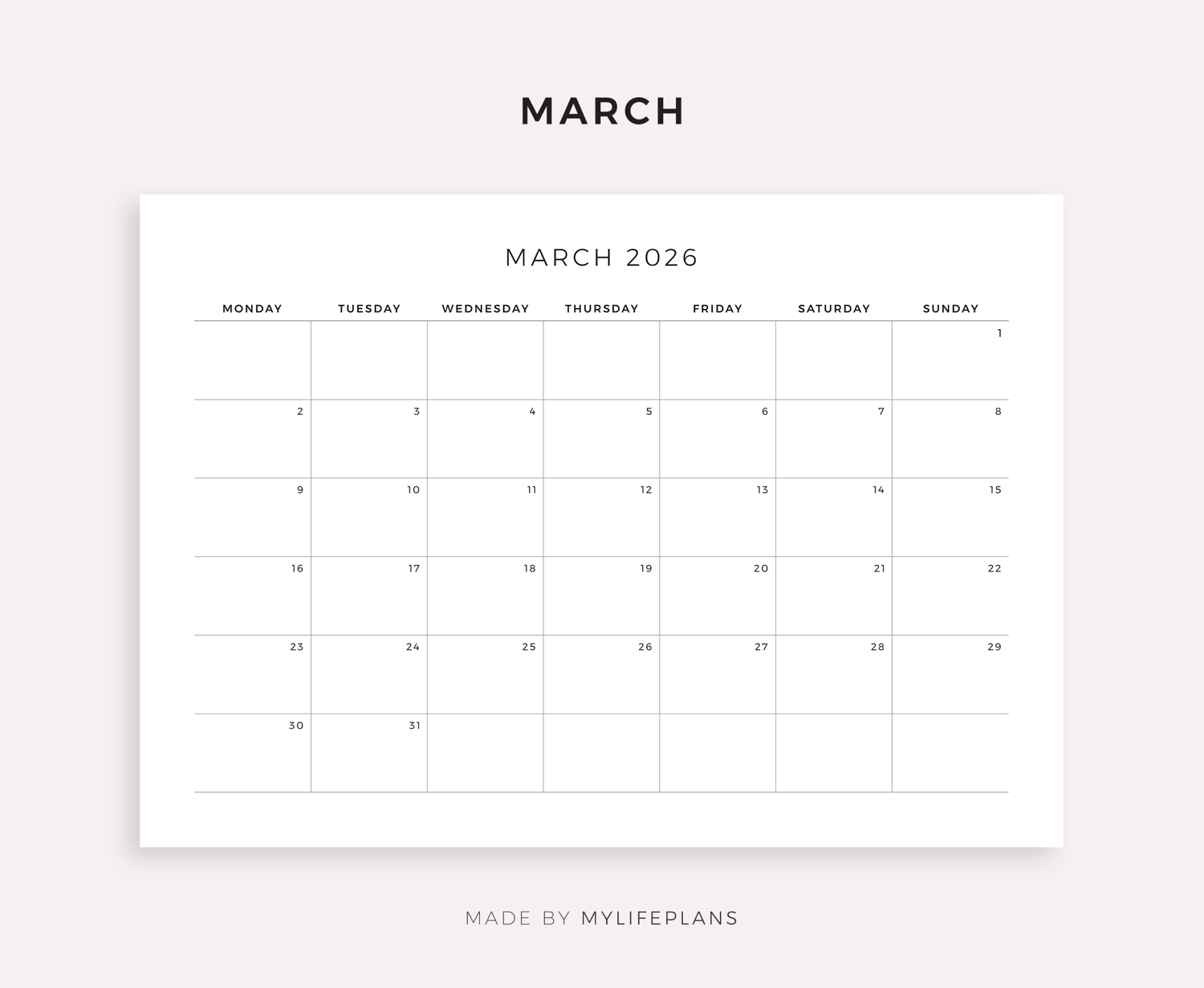 This is a printable 2026 monthly calendar — just download, print, and start using it right away.