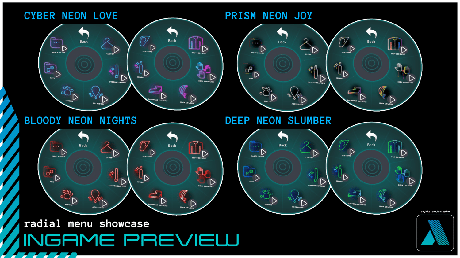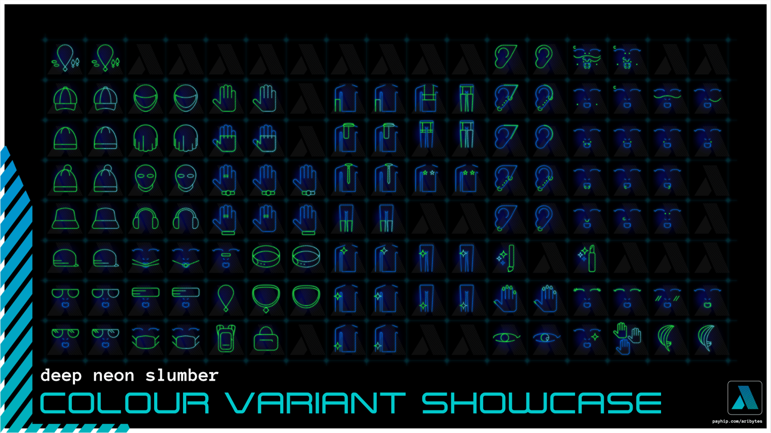 ‘cyber neon love’, ‘prism neon joy’, ‘deep neon slumber’, and ‘bloody neon nights’.