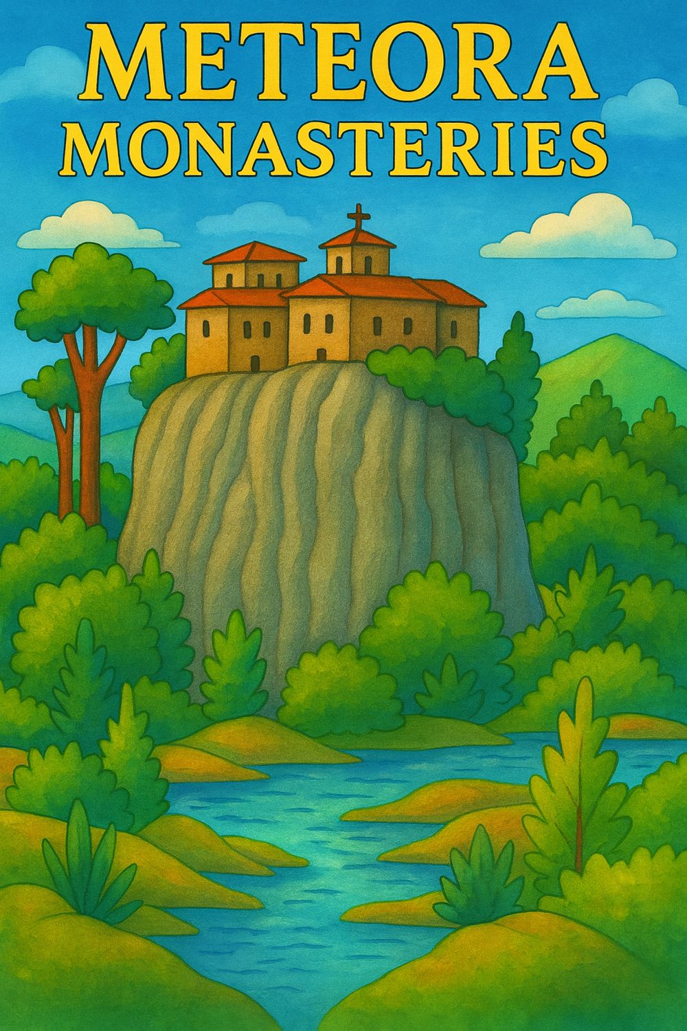 METEORA GREEK MONASTERIES, coloring ebook, 71 pages, digital printable product, instantly download