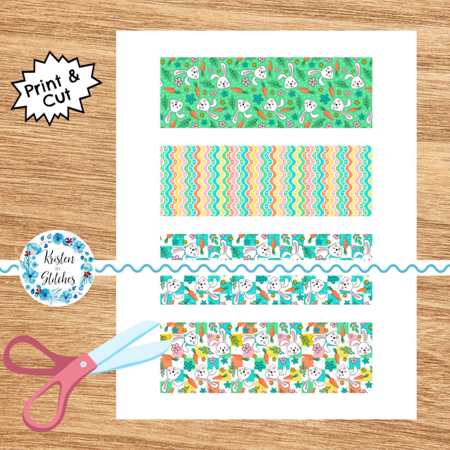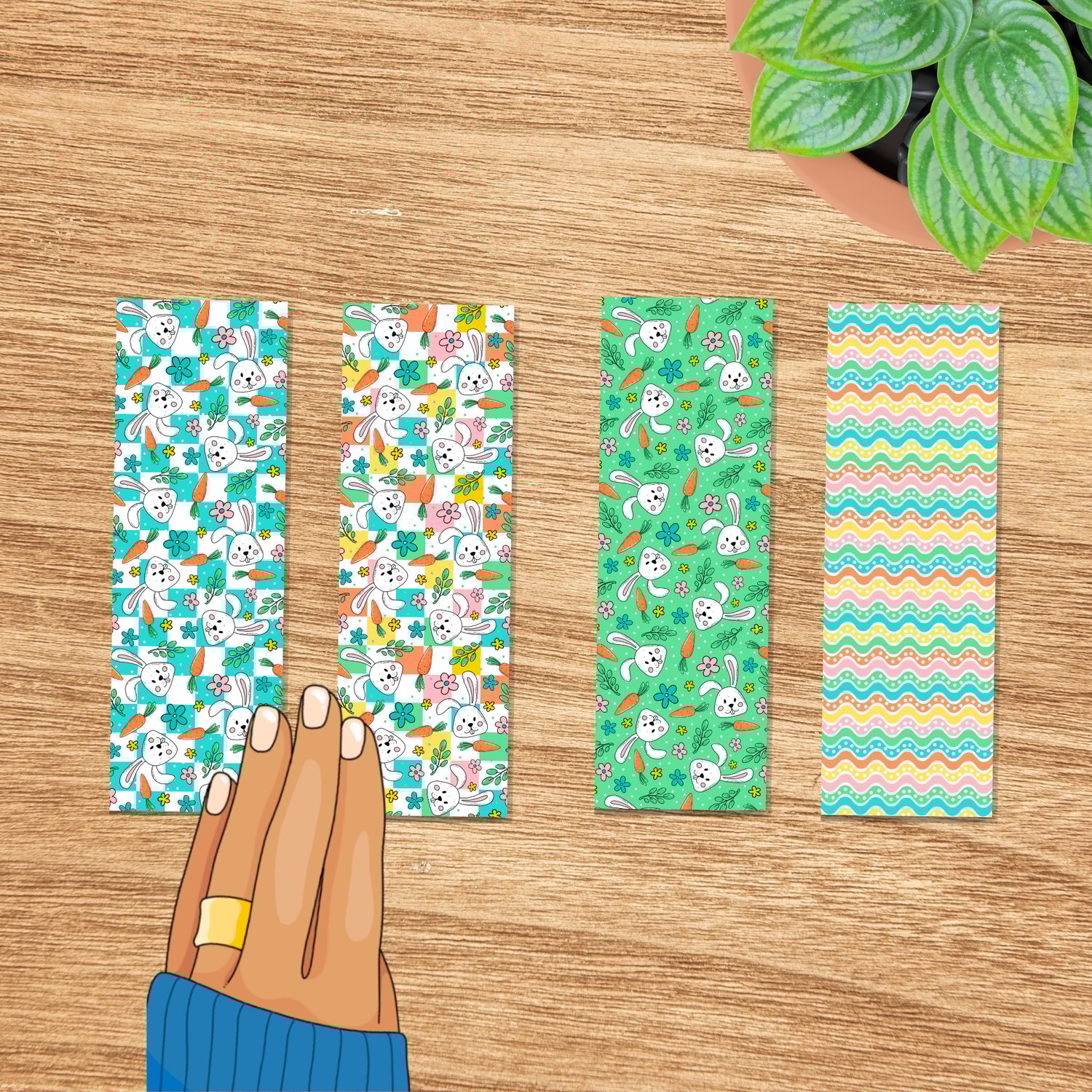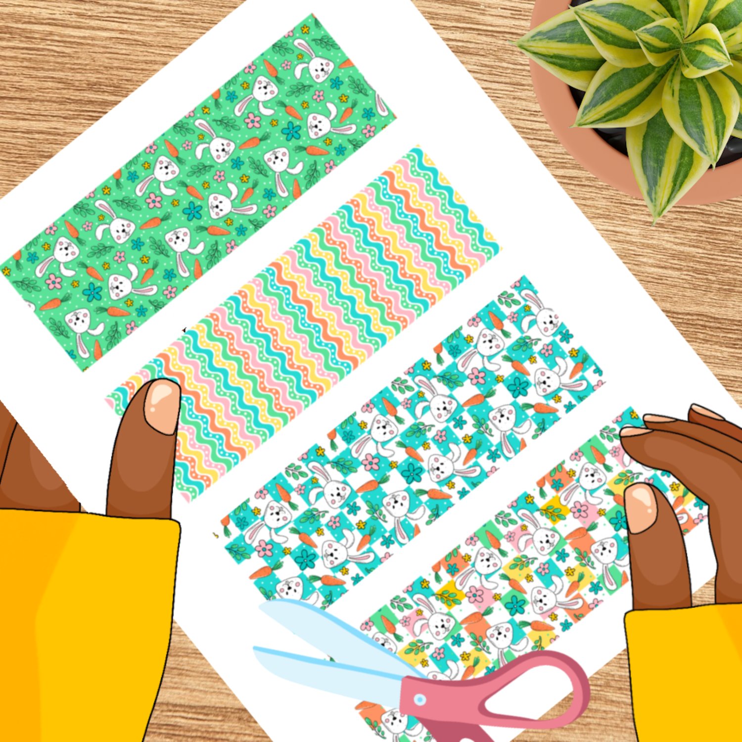Easter Bunnies Printable Bookmarks Sheet 2x6 Print and Cut PDF PNG Craft Prizes Activities, Spring Bunny Rabbits