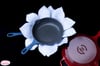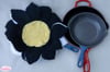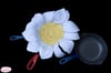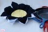 Petals, worked flat, can be worked in a single layer for a “one color” daisy, or in pairs for a reversible white/black petal combination.