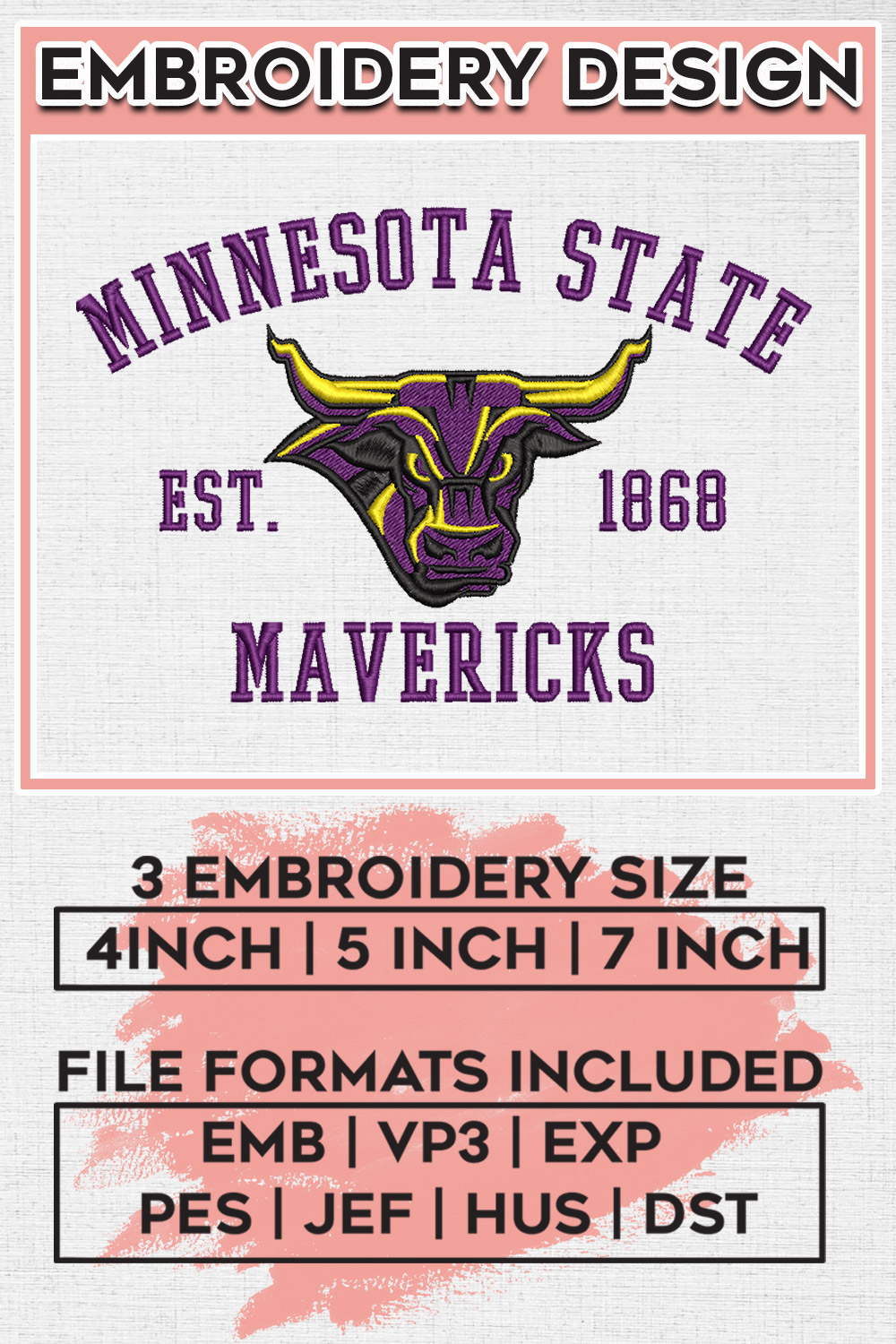 Minnesota State Mavericks NCAA Team Est Logo Embroidery Designs, NCAA Minnesota State Mavericks Machine Embroidery Files, NCAA Logo embroidery designs, Ncaa Minnesota State Logo, Digital Download
