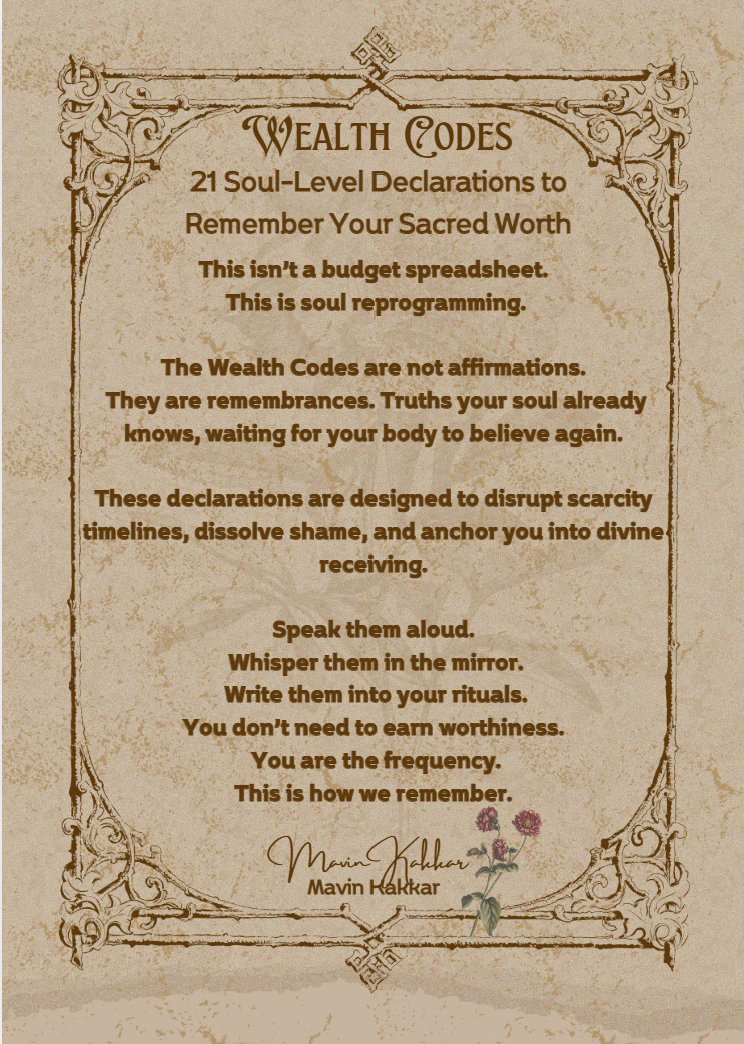 The Wealth Codes are not simple affirmations — they are remembrances. Truths your soul has always known, waiting for your body to believe again.
