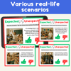 Teach social skills with these fun Expected vs. Unexpected Boom Cards!