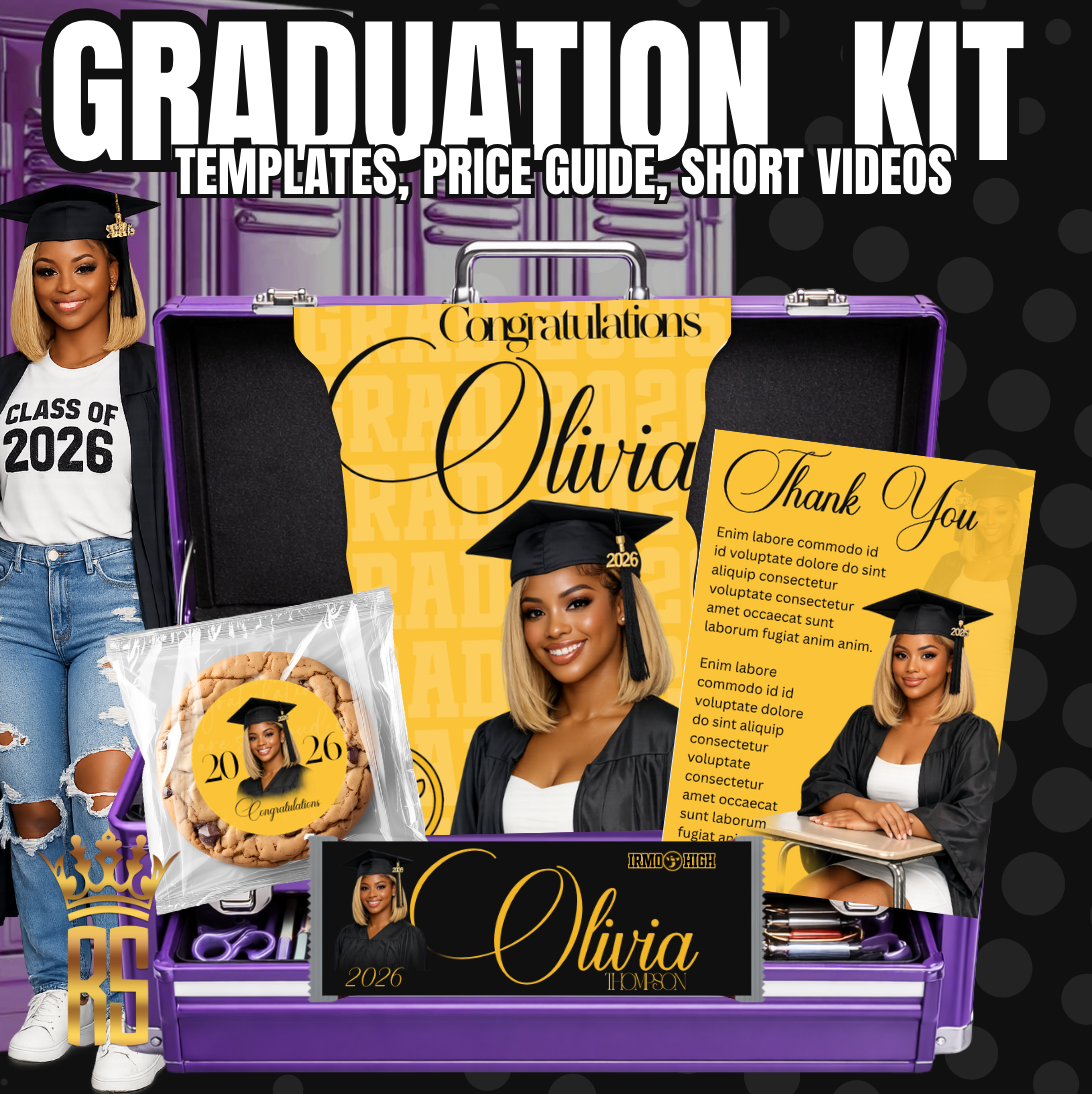 A bold, beginner-friendly Canva kit that shows creatives exactly what to design, price, and sell for graduation season — without overthinking or overwhelm.