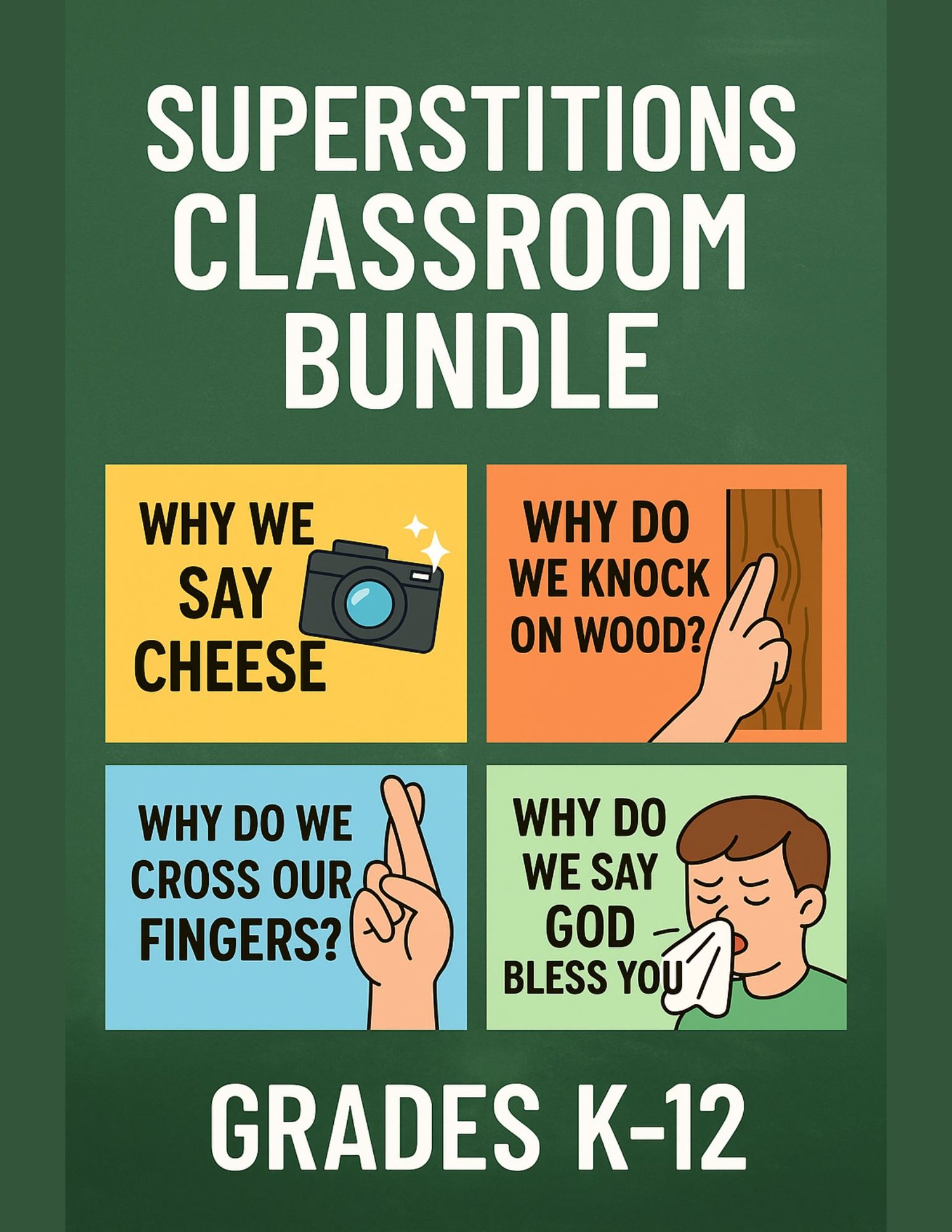 Unlock curious minds with the Superstitions Classroom Bundle — a fun, engaging, and educational exploration into everyday expressions we often say without thinking! This K–12 adaptable bundle includes four mini-lessons that delve into: