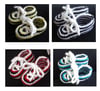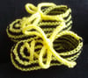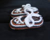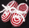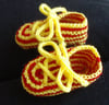 These baby lace up garter stitch shoes in AFL colours are knitted in easy garter stitch with i–cord laces.