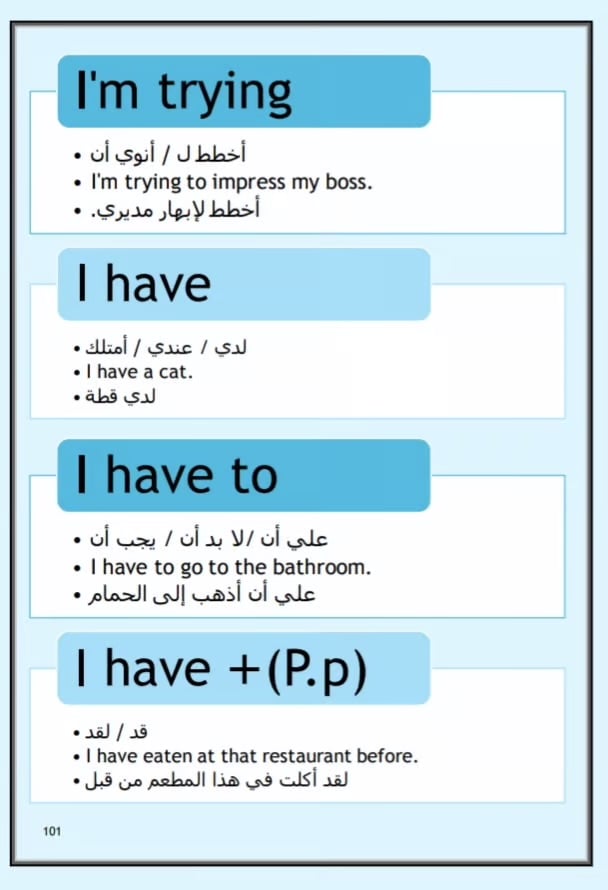 يتكون من قسم مصطلحات شائعة , أساسيات التحدث باللغة الإنجليزية , الأفعال المركبة , وغيرها من الأقسام الممتعة