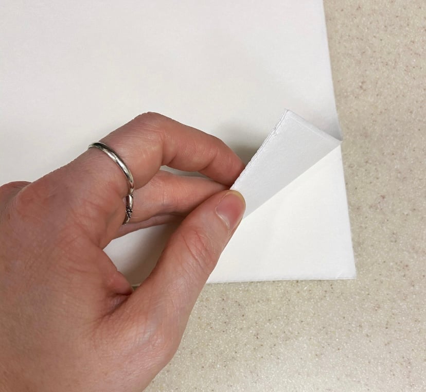Use tear away embroidery stabilizer behind fabric and secured in hoop while stitching, then simply tear away when finished with your project. Tear carefully to not tamper your stitches. Includes pack of 10 sheets.