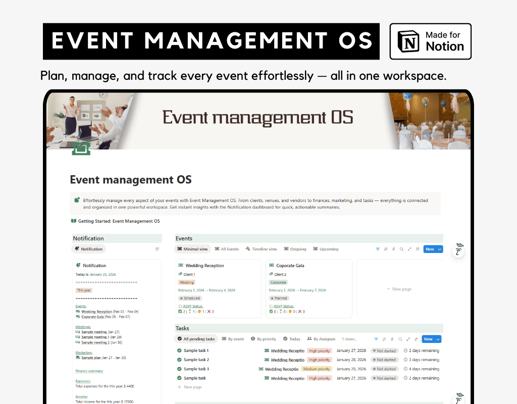 - Integrated Databases: Projects, Tasks, and Notes are fully linked, so context, details, and priorities are always at your fingertips.
