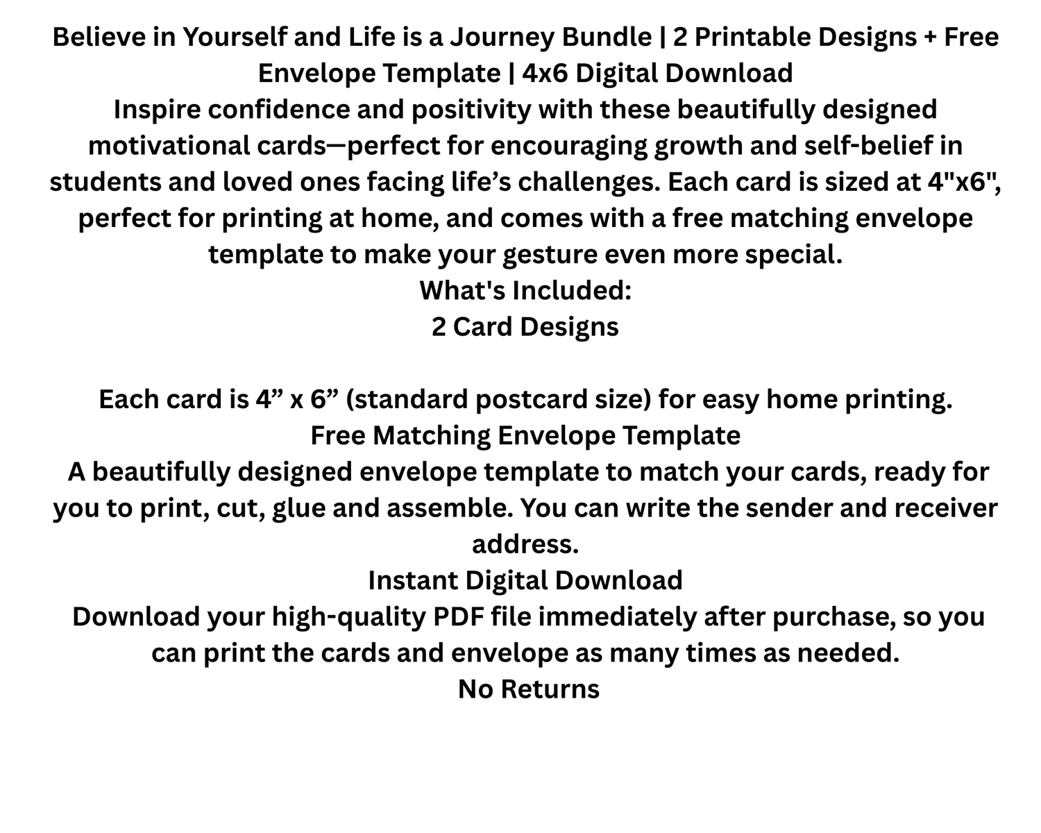 Believe in Yourself and Life is a Journey Bundle | 2 Printable Designs + Free Envelope Template | 4x6 Digital Download