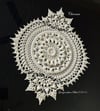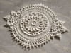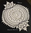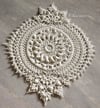 Pattern consists of 27 rounds and measures 12 x 15 inches, used around 400 yards of size 20 mercerised cotton thread with 1.75 mm steel hook.