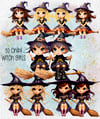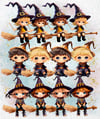 Cute Halloween witch/warlock chibi dolls. 22 PNGs. 10 girls, 12 boys. Blonde, brunette. Brown, blue eyes. Sublimation, print