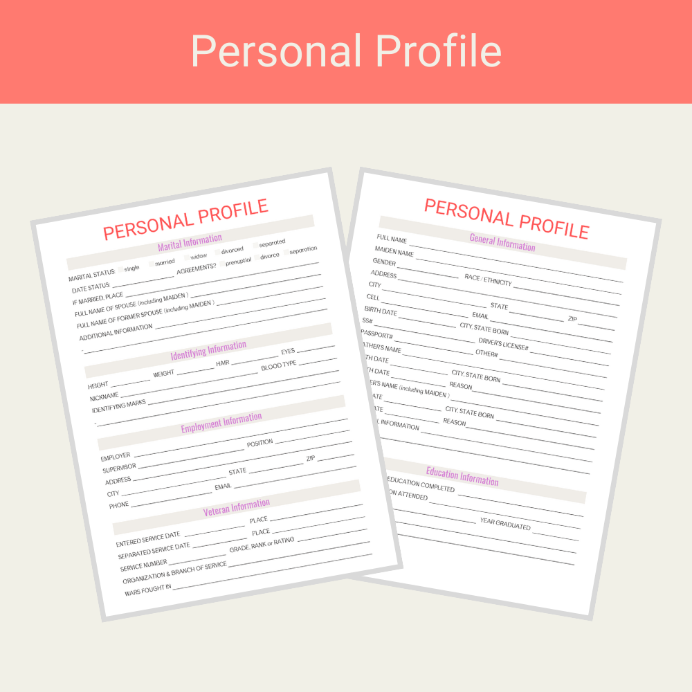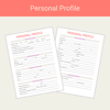 This Profile Pages Canva template pack will be useful to add to any planner or bundle pack where your customer needs to complete profile information.