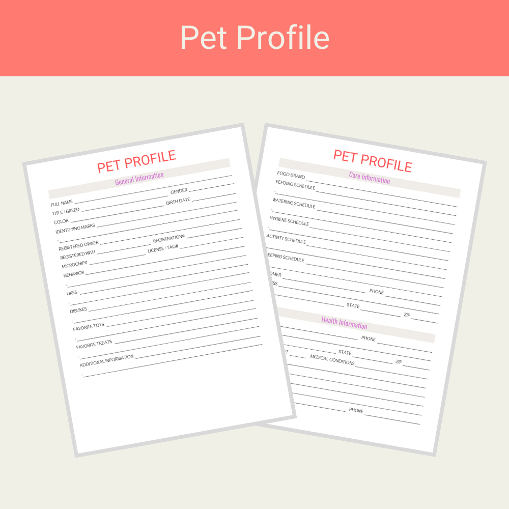 - Pet Profile (2 pages)