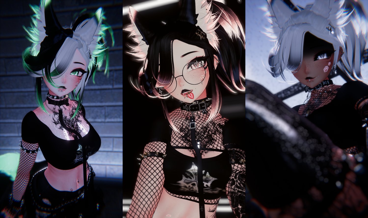 ৹ Choker, Glasses, Leg Warmers, Fishnets, Fishnet Top, Arm Cuffs, Lace Cuffs, Cat Plush, Stickers, Belt, Strawberry, Collar, Leash & Thigh Straps
