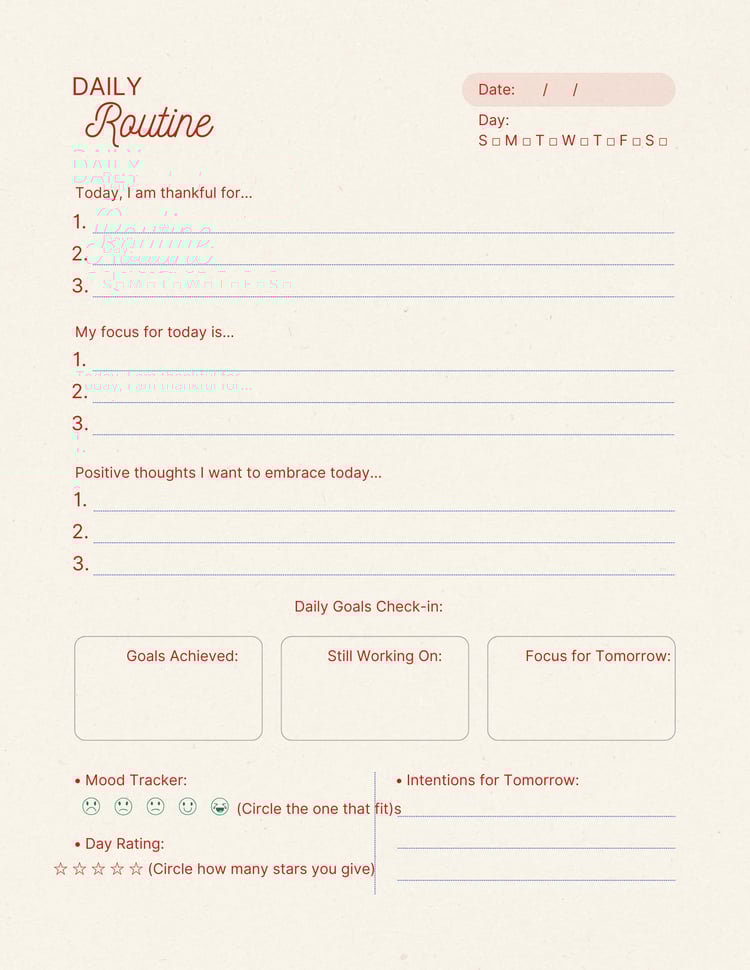 Prioritize your well-being and make self-care a daily habit with this Self-Care Planner. Designed to help you plan your routines, track habits, and nurture your mind, body, and soul, this digital printable makes self-care simple, intentional, and joyful.