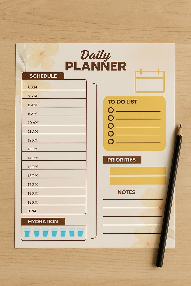 This single-page printable PDF is crafted to help you stay organized, mindful, and motivated. Plan your priorities, track your meals and water intake, and reflect with gratitude — all in one clean, easy-to-use sheet.