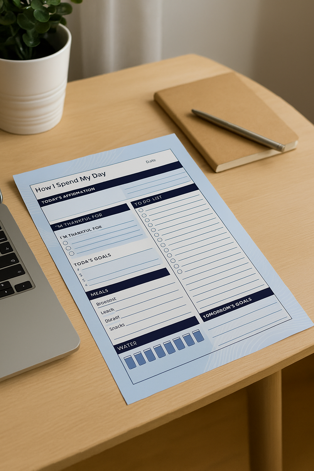 Simply download, print your A4 planner, and start your day organized, focused, and grateful.