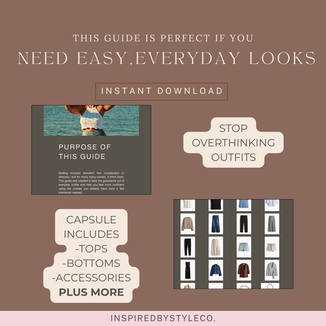 Instead of buying more clothes, this guide shows you how to get more outfits from what you already own — with clear outfit formulas, styling inspiration, and practical guidance designed specifically for curvy bodies.