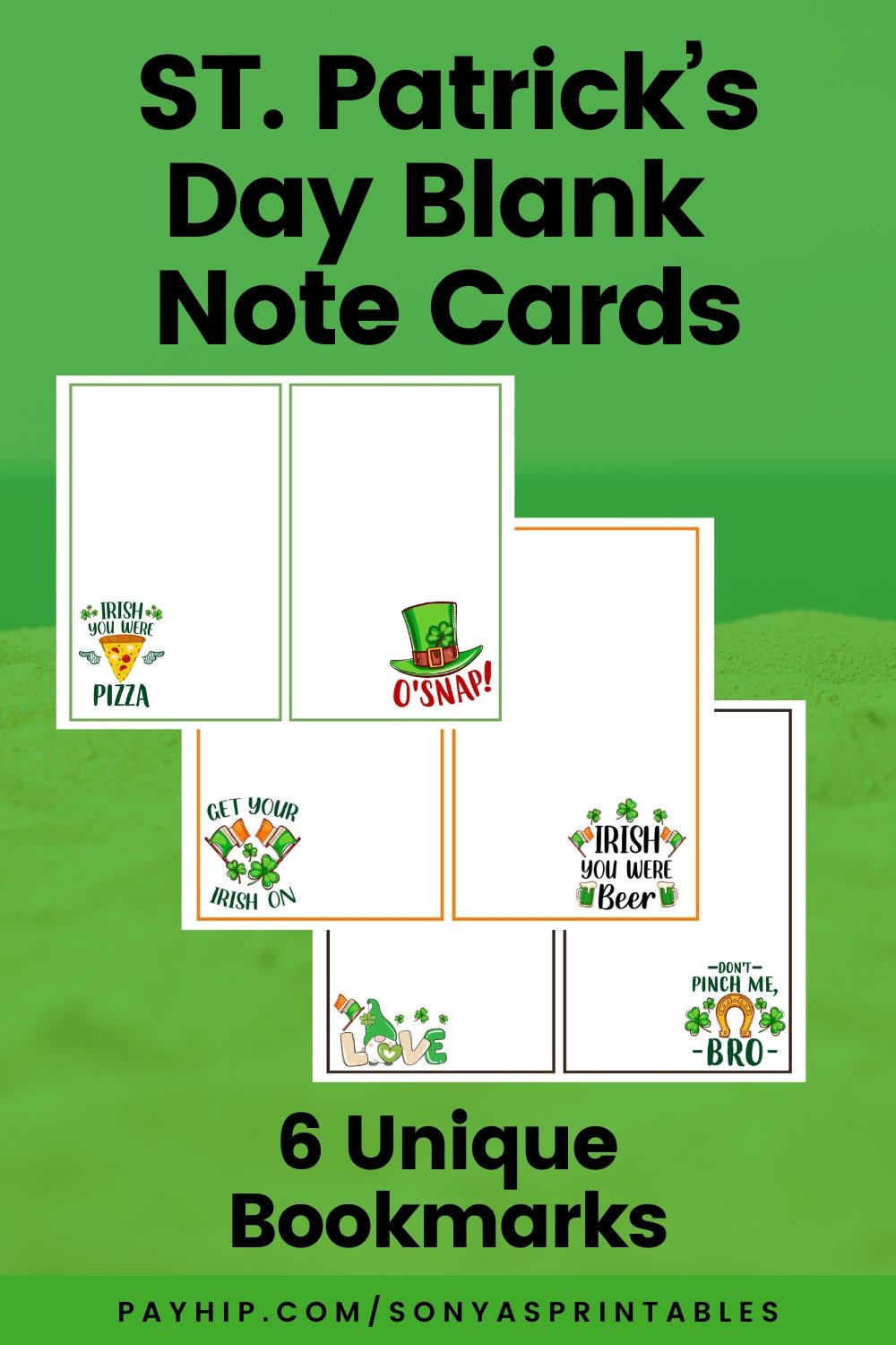 Spread some Irish cheer with our ST. Patrick's Day Blank Note Paper! Stay connected with friends and loved ones this season by sending them personalized messages on these charming note cards. Simply print them on card stock and you have ST. Patrick’s Day Note Cards. Whether you're writing heartfelt messages or sharing a laugh, these note cards are the perfect way to brighten someone's day. So grab a pen, get creative, and let the St. Patrick's Day magic begin! 💌 Your 6 unique note cards will be delivered on 3 PDF pages.