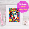 Contemporary Pop Art Canvas - Strong Woman Face Painting. Vibrant Pop Art Female Portrait - Bold, Colorful Wall Art
