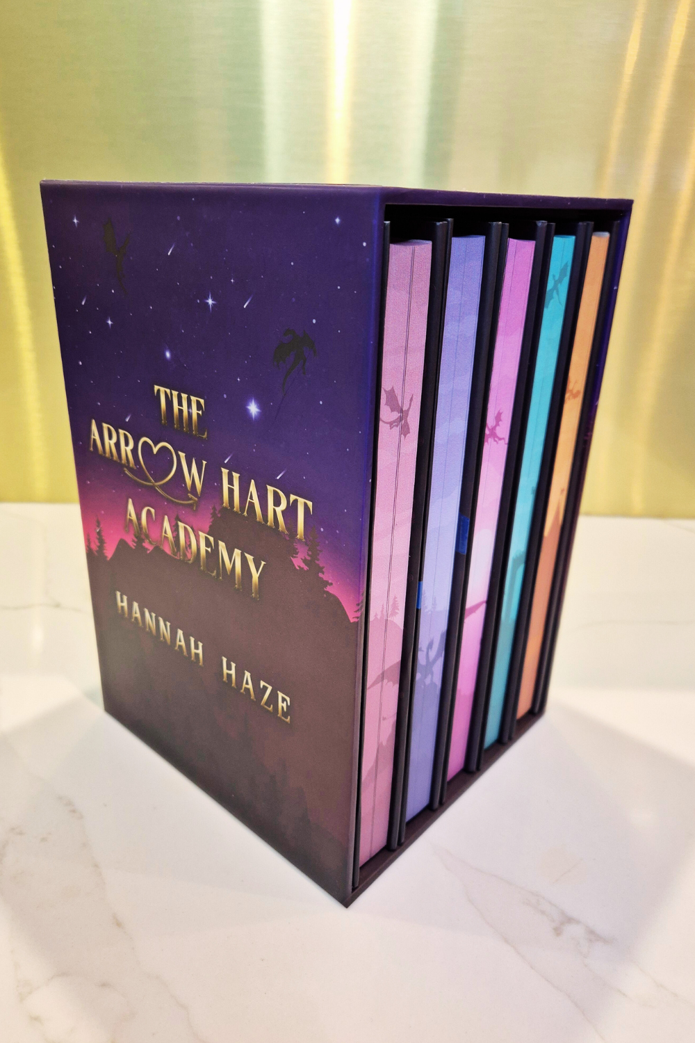 Limited Edition of hit fantasy romance series the Arrow Hart Academy. These beautiful deluxe special editions, was made possible via a completed Kickstarter campaign and these are the final few sets of books remaining from our single print run.