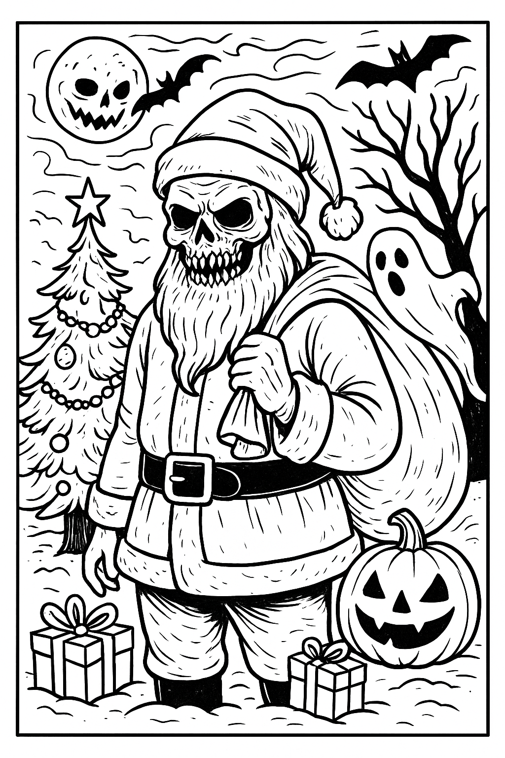 Creepy-Dark and Spooky Christmas, coloring ebook, 60 designs, digital product, instantly download