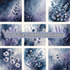 A dreamy collection of 24 botanical watercolor backgrounds in a soothing palette of indigo, steel blue, and dusky lilac. Perfect for creating elegant designs with a soft, ethereal touch.