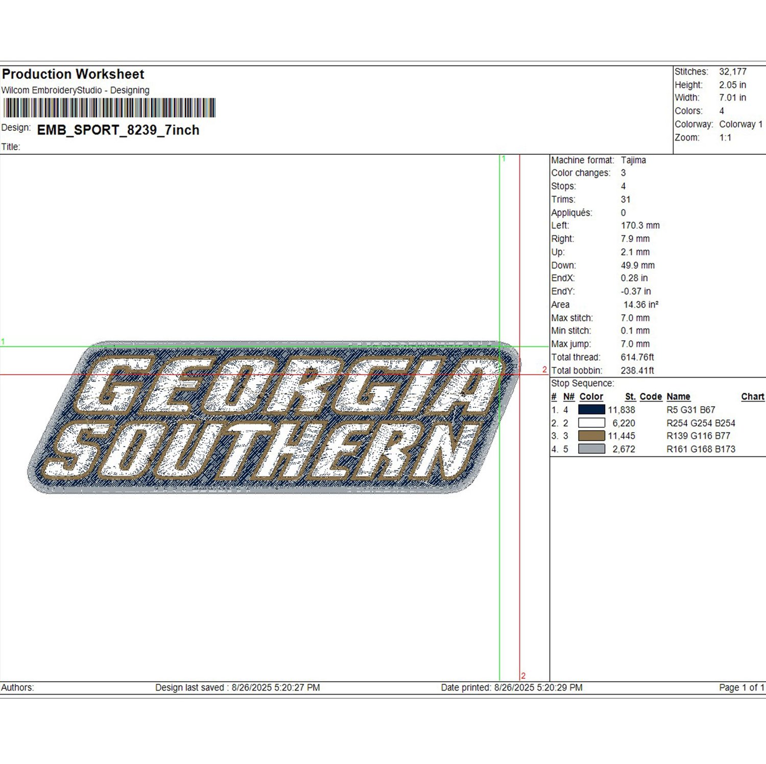 NCAA Georgia Southern College Football Team Word Logo Embroidery Designs, Ncaa Embroidery Files, Georgia Southern Eagles Team Logo Embroidery, Game Day Machine Embroidery Design, Digital Download