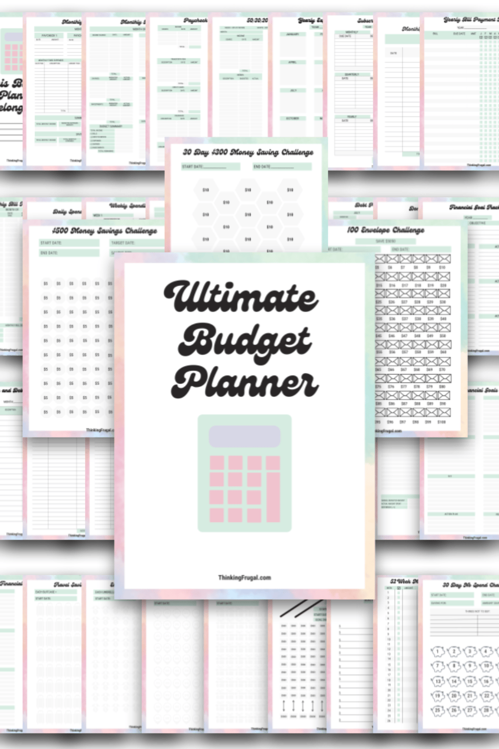 - This bundle includes 40 total pages. Includes cover page, belongs to page, 2 different monthly budget pages, paycheck budget 50/30/20 budget, yearly expense tracker, subscription tracker, monthly income tracker, yearly bill payment tracker, monthly bill tracker, daily spending tracker, weekly spending tracker, monthly spending tracker, debt snowball tracker, debt payment tracker, donation tracker, financial goal tracker, checkbook/debit card register, savings account tracker, emergency fund tracker, sinking funds tracker, retirement funds tracker, vacation budget, birthday gift budget, Christmas/holiday gift budget, financial goals tracker, travel savings tracker, emergency fund tracker, car savings tracker, holiday gift savings tracker, house savings tracker, savings tracker, 52-week savings challenge, 30-day no spend challenge, $500 money savings challenge, 100 envelope challenge, and 30-day $300 money savings challenge.