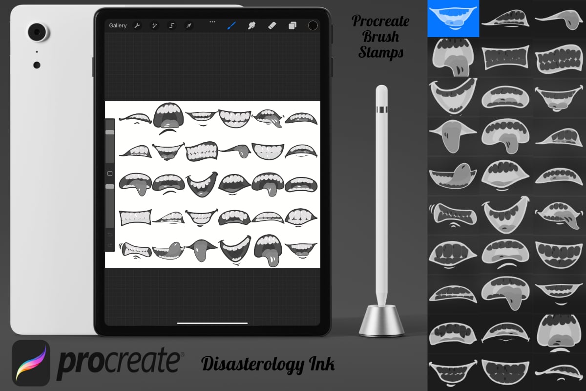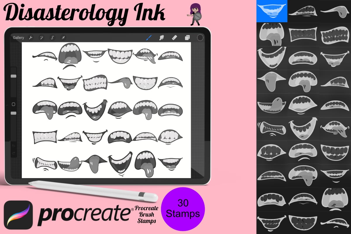 Pack of 30 cartoon mouth Procreate Stamp Brushes! These smirking mouths stamps are perfect for making illustration projects or any procreate purpose. You can use these in any colour or opacity and they can be resized to best fit your art. You need Procreate 5.0.8 or 5X, an iPad, and an Apple Pencil. Also, these stamp brushes are not pressure sensitive and can be used with third party stylus, Apple Pencil or even your finger. You can change the colour, size and opacity of these stamps.