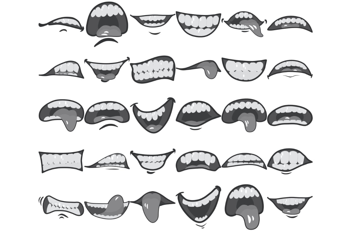 Cartoon Mouths Procreate Brush Stamps Set 2, 30 Cute Cheeky Cartoon Grins and Smiles