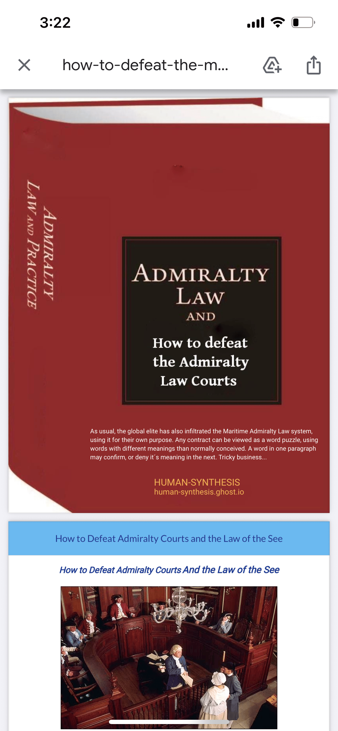 Learn how global elites have historically manipulated the maritime Admiralty law system, how courts interpret technical language, and how to protect yourself from legal traps. This is about knowledge, awareness, and empowerment, not shortcuts or gimmicks. One read could shift your understanding of law, contracts, and your personal sovereignty.
