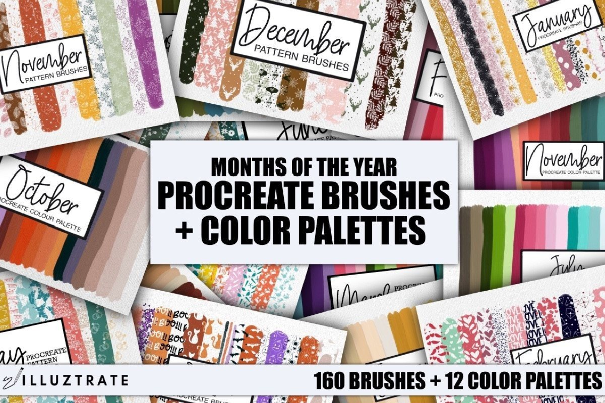 Procreate Brush and Color Palette Bundle — 160 Brushes & 12 Color Palettes for iPad