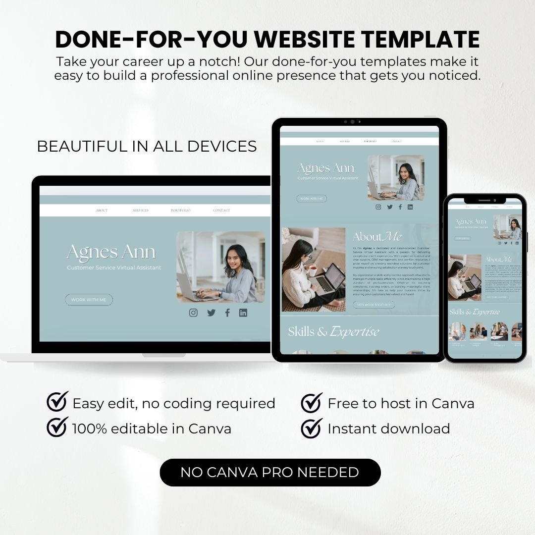 Editable Canva Website Template for Customer Service Virtual Assistants & Freelancers