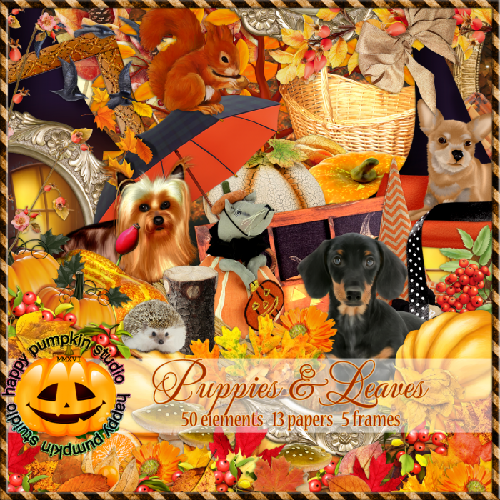 This lovely puppies n leaves kit will work so well with any animal or fall kind of projects. 50 non repeated elements, 13 papers and 5 frames it is tagger sized.