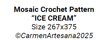 FREE Overlay Mosaic Crochet pattern, ICE CREAM, written pattern, big char Xs, PDF