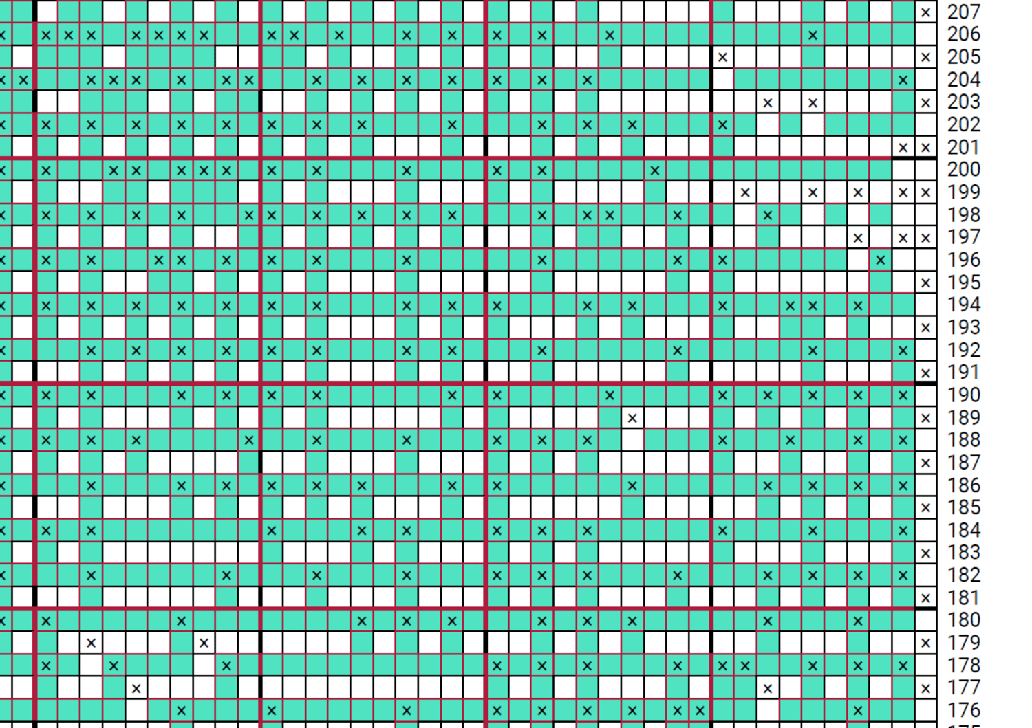- Written pattern, row by row in PDF