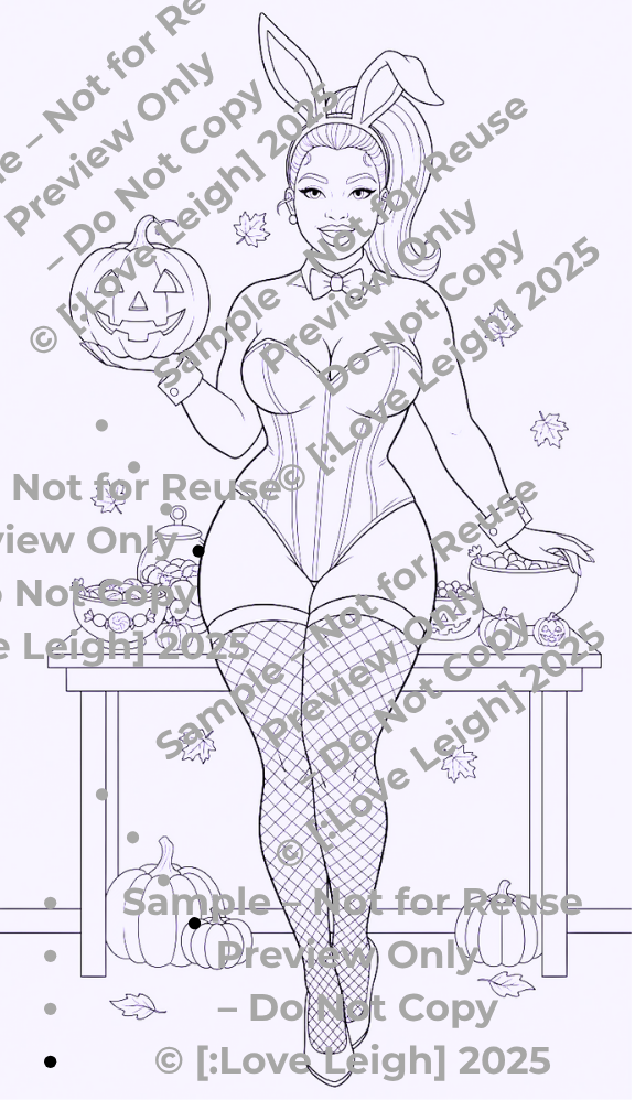 ✨ Coloring Pages – Super Woman, Cat Woman, Wonder Woman, a sultry nurse, two sexy bunny designs, and a festive pumpkin.