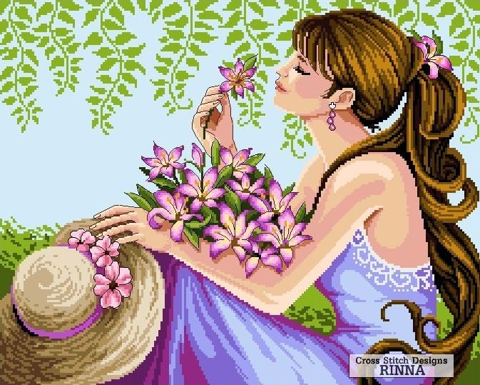 Lady of Spring (Blue Dress) - Cross Stitch PDF Downloadable Pattern
