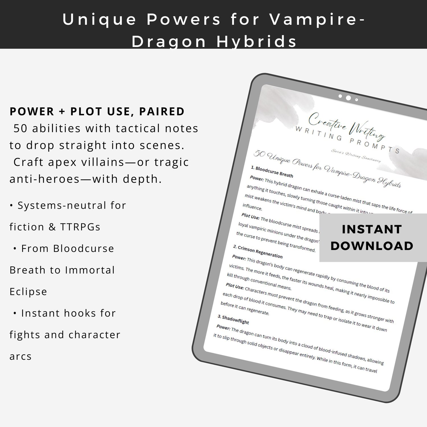 50 Unique Powers for Vampire-Dragon Hybrids