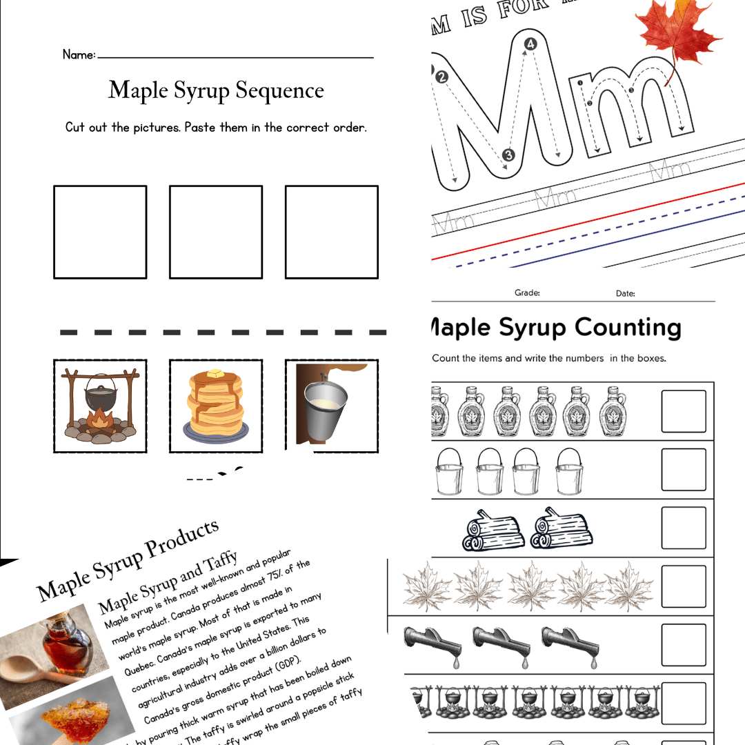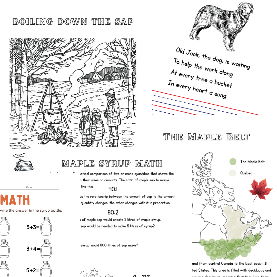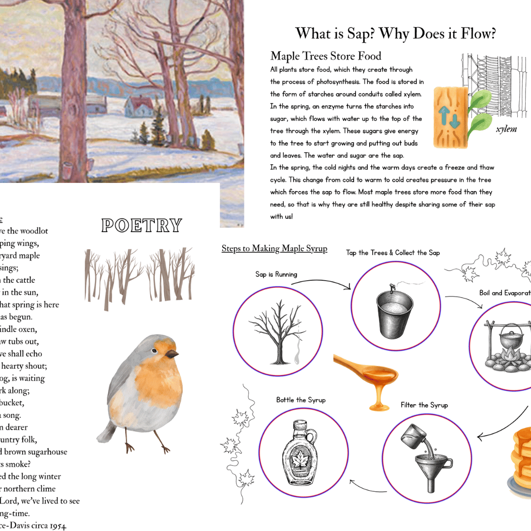 This study on Maple Syrup is designed for all ages and covers art, poetry, science, math, geography and includes copywork in cursive and printing. Here's what it includes: