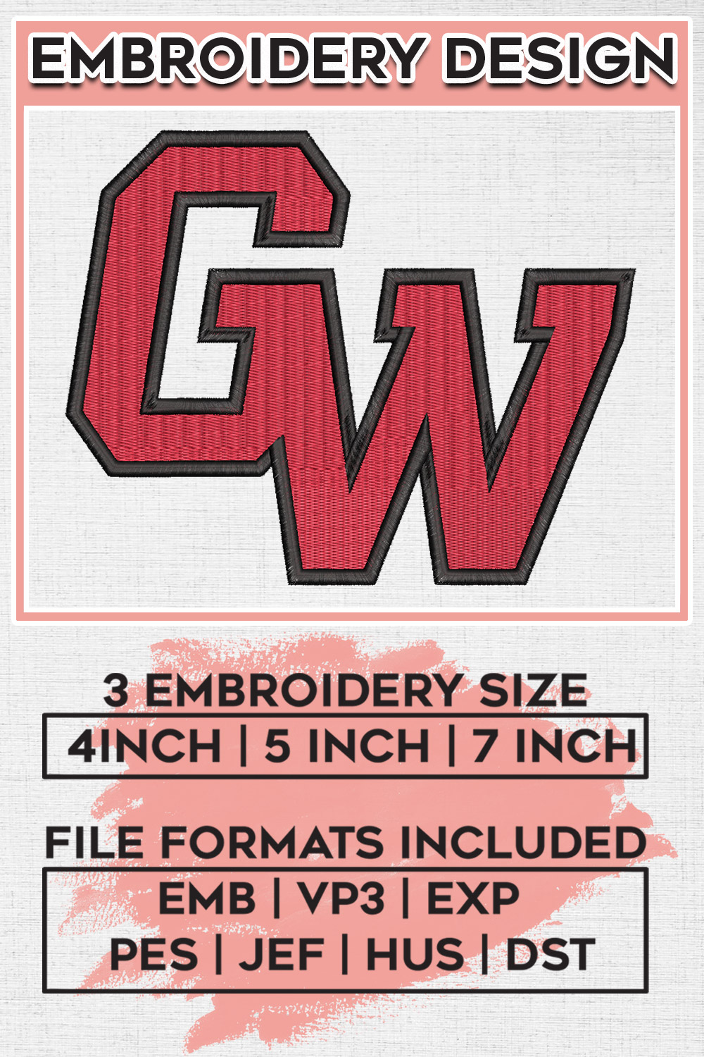 GW Runnin Bulldogs Football Team Logo Embroidery Files, NCAA Gardner Webb Runnin Bulldogs Team Embroidery, NCAA College Football Teams, Gardner Webb Runnin Team Emroidery, 3 sizes, Machine embroidery designs, Digital Down