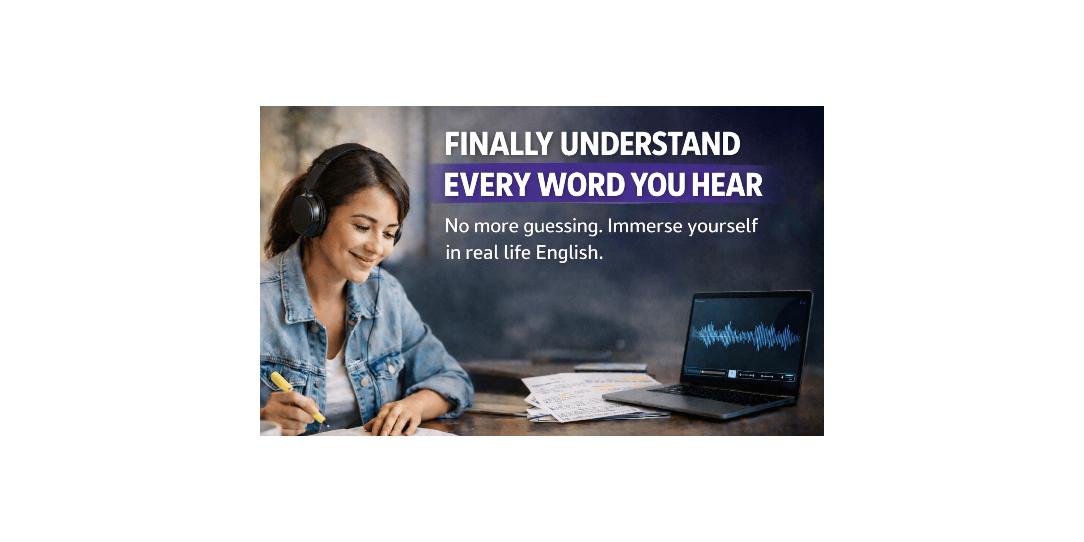 Perfect to help you level up your daily life English. Our Complete Listening Guide immerses you in over 100 real-life situations and 2,000+ naturally spoken words, phrases, and grammar points.